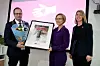 Helse- og omsorgsminister Ingvild Kjerkol (Ap) deler ut prisen Årets demensvennlige kommune 2023 som er Kleppkommune med ordfører Kjetil Maudal (FrP). Generalsekretær i Nasjonalforeningen forfolkehelsen, Mina Gerhardsen,. t.h.